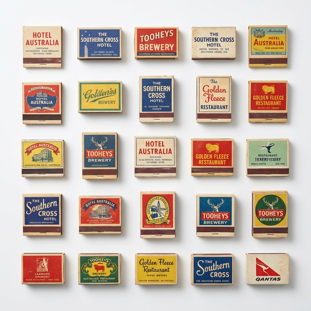 Curated selection of 25 vintage Australian matchboxes.