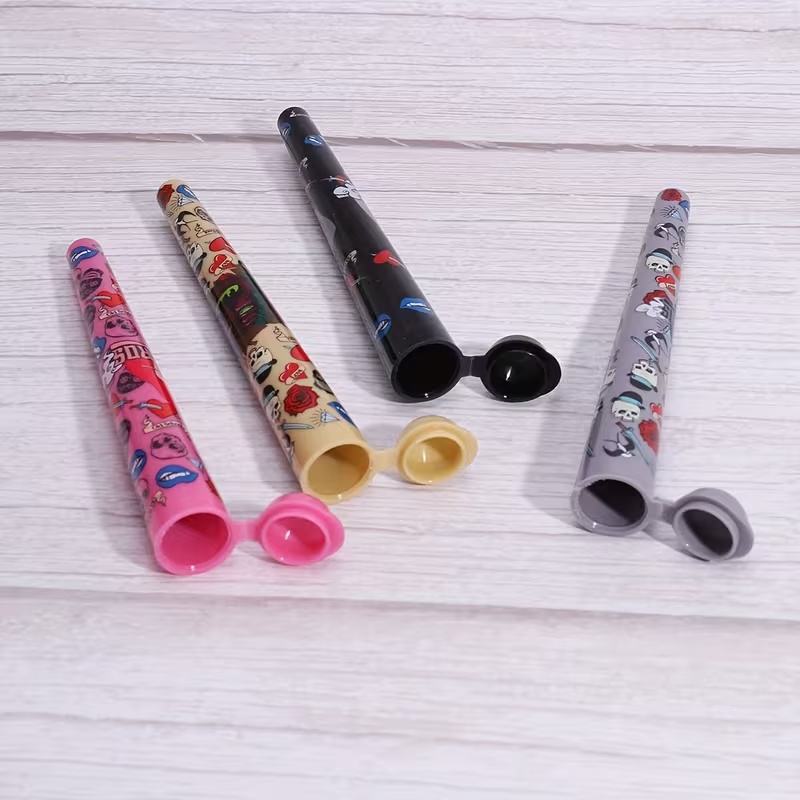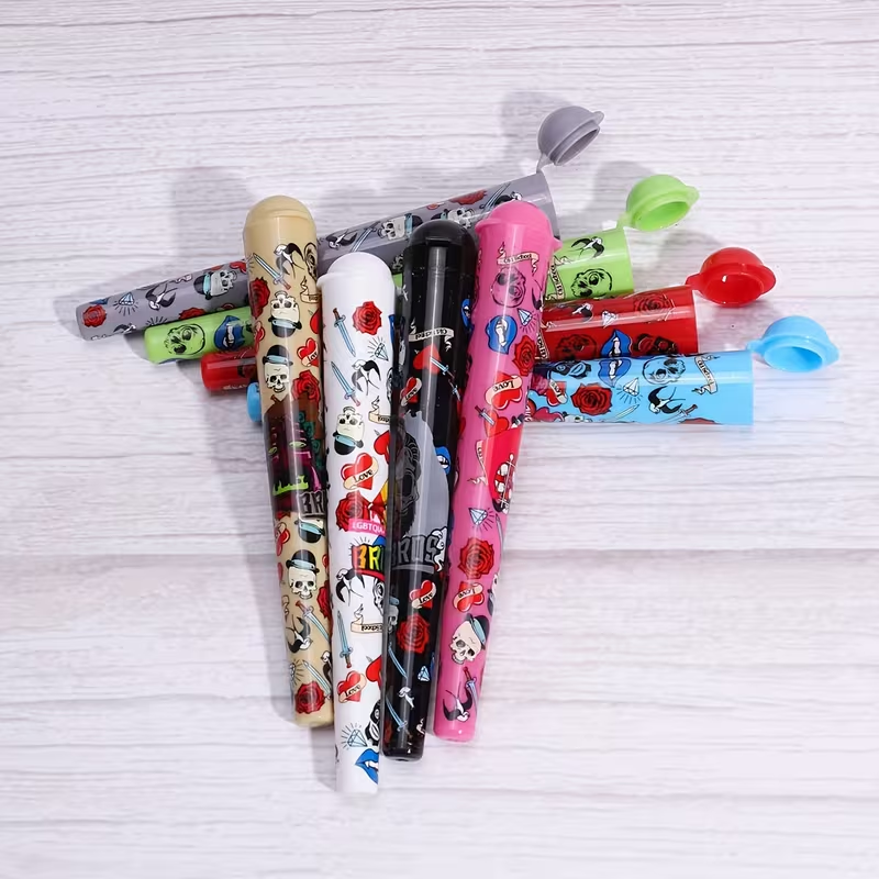 Keep your pre-rolls fresh and protected with these eye-catching skull-themed tubes. Each tube features vibrant skull graphics in various color combinations.